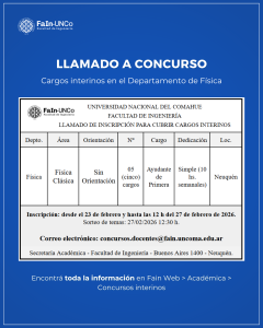 10/09/2025 | La Secretaría Académica informa un nuevo llamado a inscripción a un cargo interino en el Depto. de Física.