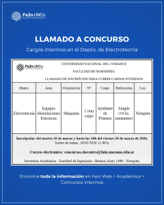 09/03/2026| La Secretaría Académica informa un nuevo llamado a inscripción a cargos interinos en el Depto. de Electrotecnia